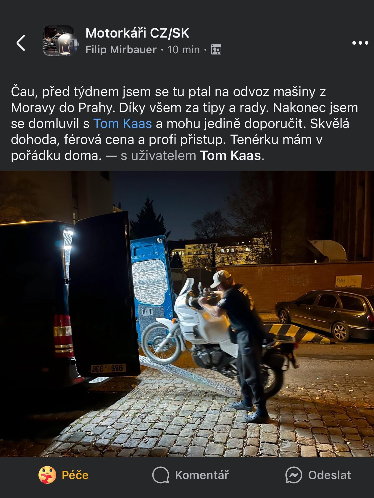 • 25 let praxe s převozy motocyklů včetně zkušeností z motocyklového sportu